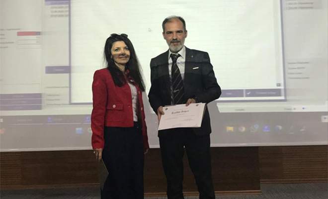 Dr. Öğr. Üyesi Seda Yavuzaslan tarafından Tayfun Gökhan SOYTAN’a üniversiteye katkılarından dolayı TEŞEKKÜR BELGESİ verildi.
