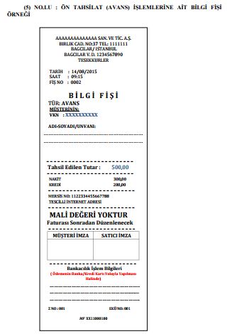 e-Fatura veya e-Arşiv faturalı satışlara ait bilgi fişlerinde ve avans bilgi fişlerinde müşterinin VKN’nın (müşterinin vergi mükellefiyetinin bulunmaması halinde VKN bilgisi “1111111111” olarak gösterilebilecektir),