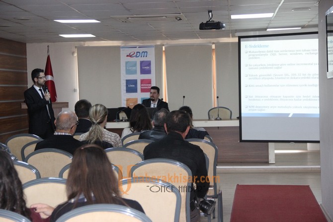 Seminere katılan Mali Müşavir ve ATSO üyelerine elektronik fatura zorunluluğu hakkında bilgi veren Ahmet Soyseven;". E-Arşiv zorunluluğu var mı? Varsa neler var? Hakkında bilgi ve E-ticarette e-arşiv zorunluluğu mevcut ve gelecek olan zorunluluk ile bilgi veriyoruz. E-fatura ile birlikte e-defter zorunluluğu ve nasıl işlendiği hakkında bilgi vereceğiz. Yeni geçecek olan 2018’de başlayacak olan e-irsaliye e-müstahsil makbuzu ve e-serbest meslek makbuzları ile ilgili süreç ve işlemler hakkında genel bilgiler paylaşacağız. En sonda muhasebe yedekleme ürünlerinden bahsedeceğiz" dedi.