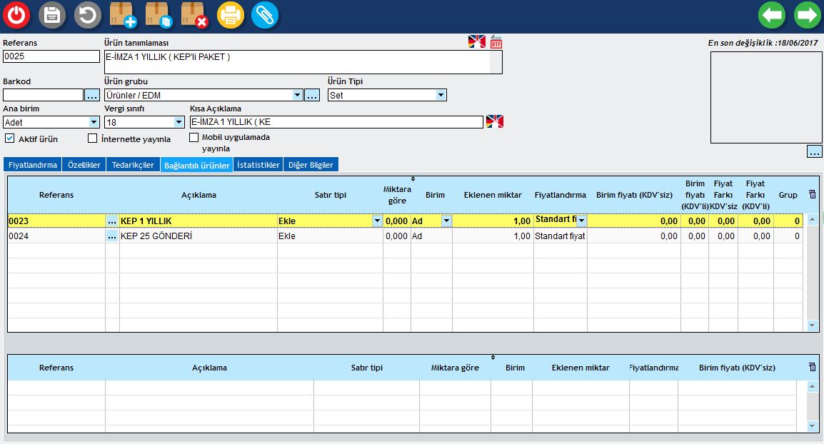 Bu ürünü tekli satış yada setli şeklinde oluşturabiliriz. Setli ürün oluştururken stoklarımızdan asıl ürünün yanında ( indirimli veya sabit fiyatla ) satış faturası kesilirken otomatikman gelmesini sağlar. Böylece her bir ürünün maliyet hesabını kontrol etmiş oluruz. Kullandığımız modüle göre, stoklarımızı internette mevcut olan e-ticaret sitemizde ve mobil uygulamada görünmesini sağlayacak ayarları yapabilirsiniz.